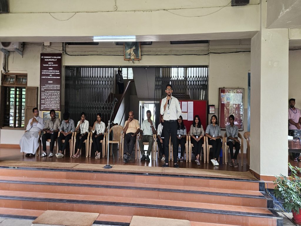 The College Union of St Dominic’s College is a common platform of all students of the college where they come together and organize events and activities with a view to develop their critical thinking, creative abilities and social commitment in accordance with the rules and regulations of Mahatma Gandhi University, under the control of the principal, following the advices of the teacher in charge and under the leadership of the office bearers elected in the parliamentary mode.