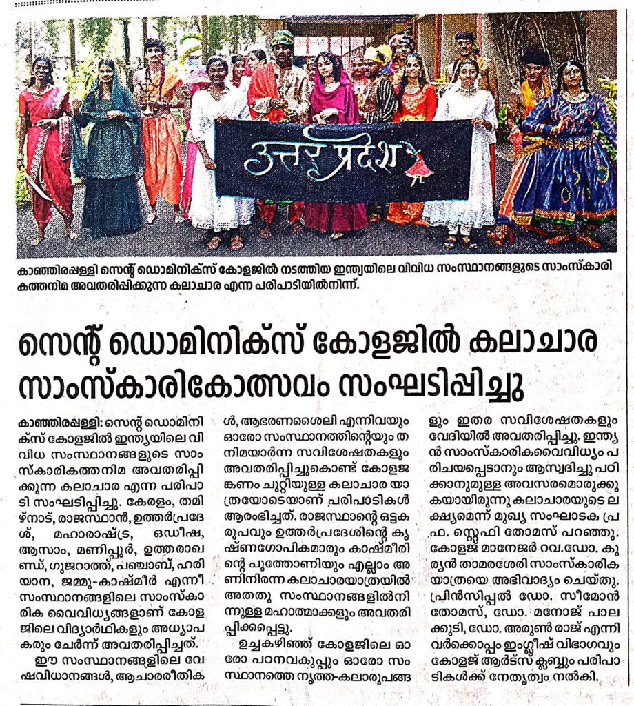 St. Dominic’s College was honoured with the State-Level Best Institution Award under the Young Innovators Programme (YIP) by the Government of Kerala for its outstanding initiatives during YIP-5 and YIP-6, while the college coordinator, Dr. Rani Alphonsa Jose, was recognized as the Best Facilitator and received the award from the Honourable Minister at the function held in Thiruvananthapuram.